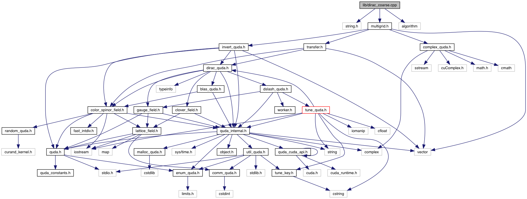 Include dependency graph for dirac_coarse.cpp: