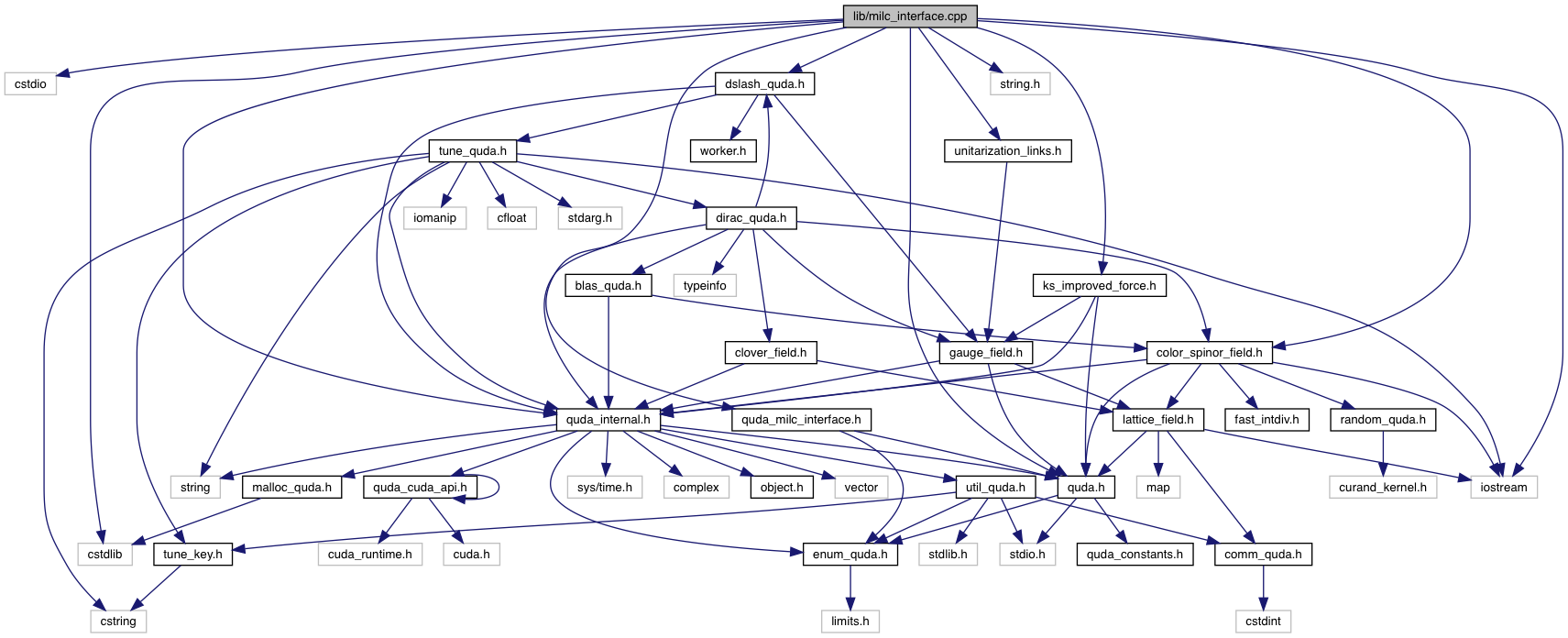 #include <cstdio>#include <cstdlib>#include <iostream>#include <quda.h>#include <quda_milc_interface.h>#include <quda_internal.h>#include <color_spinor_field.h>#include <string.h>#include <unitarization_links.h>#include <ks_improved_force.h>#include <dslash_quda.h>