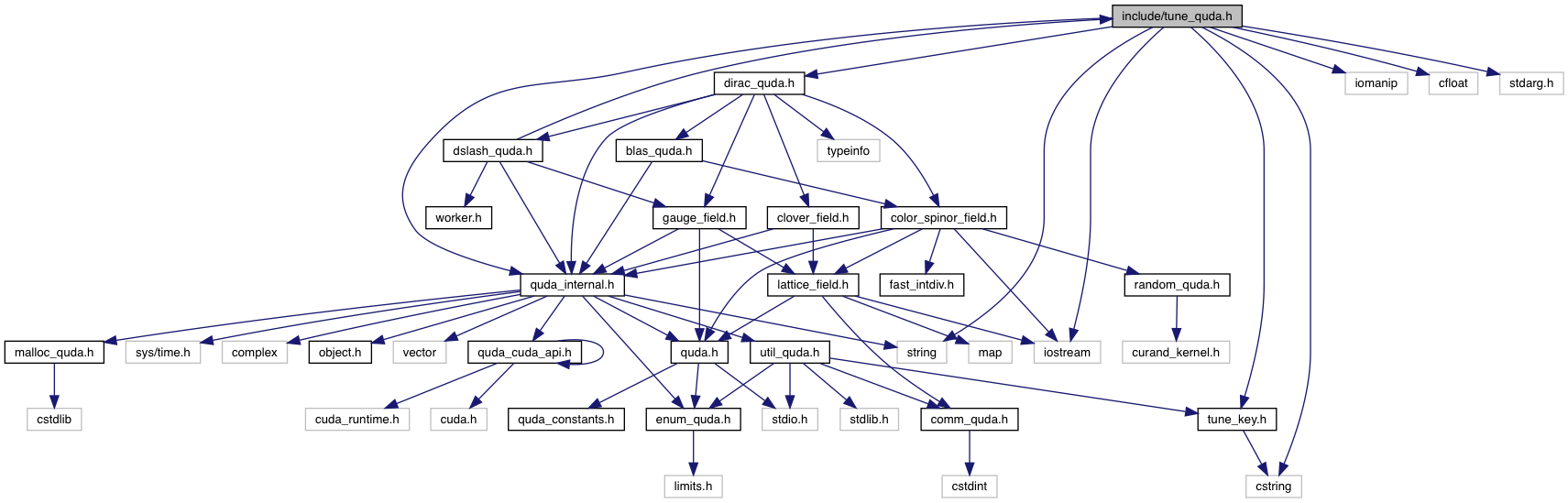 #include <quda_internal.h>#include <dirac_quda.h>#include <string>#include <iostream>#include <iomanip>#include <cstring>#include <cfloat>#include <stdarg.h>#include <tune_key.h>